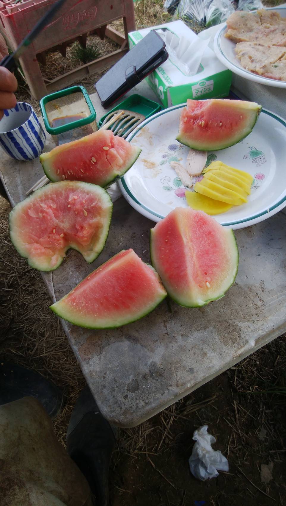農場で栽培したミニスイカが今日のデザート。結構甘かった!